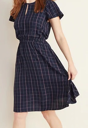 Waist-Defined Flutter-Sleeve Dress: This is the ultimate teacher dress! When I came out of the dressing room, I even hopped out, smiling, saying “Yฤซngyว lวoshฤซ!” (English Teacher)๐ It’s airy and comfortable while looking professional, making it perfect for moving to a country with such a humid climate. I bought it in both the Blue Plaid (pictured above), the color “Lost at Sea Navy” and in Black Plaid. Women’s Size L